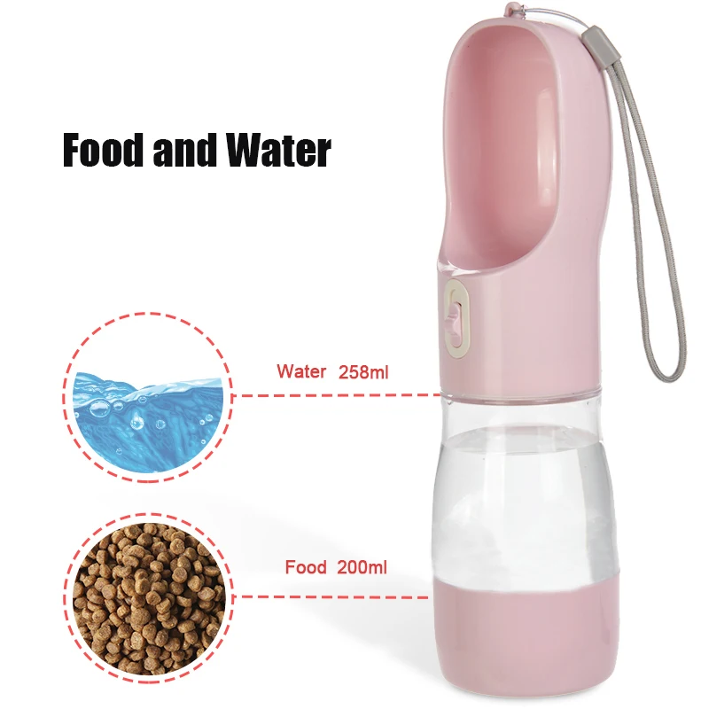 زجاجة مياه 2 في 1 للكلاب الأليفة وموزع طعام القطط ووعاء شرب متعدد الوظائف محمول للكلاب الصغيرة والكبيرة ولوازم السفر للجراء